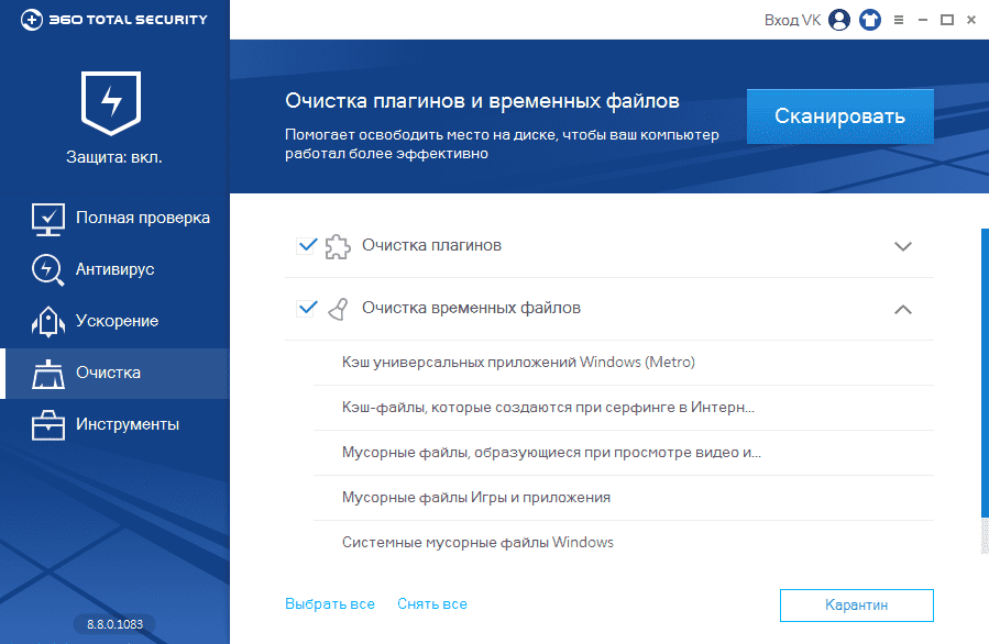 Рассмотрим, как произвести диагностику ОС с помощью 360 Total Security.