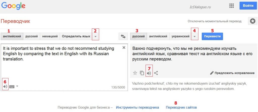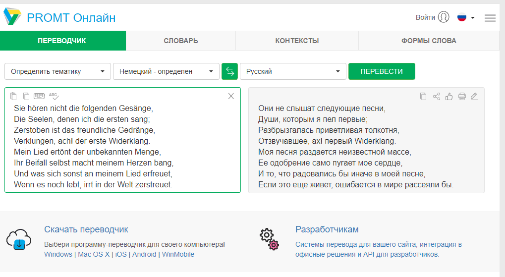 - Способность работать не только с отдельными словами, но и с их сочетаниями, благодаря чему получается текст, максимально близкий к правильному варианту. И, осуществляя, например, немецко-русский перевод, можно примерно понять, о чём речь.