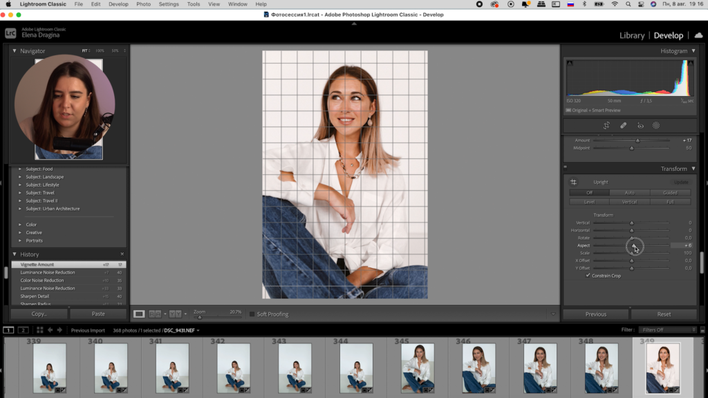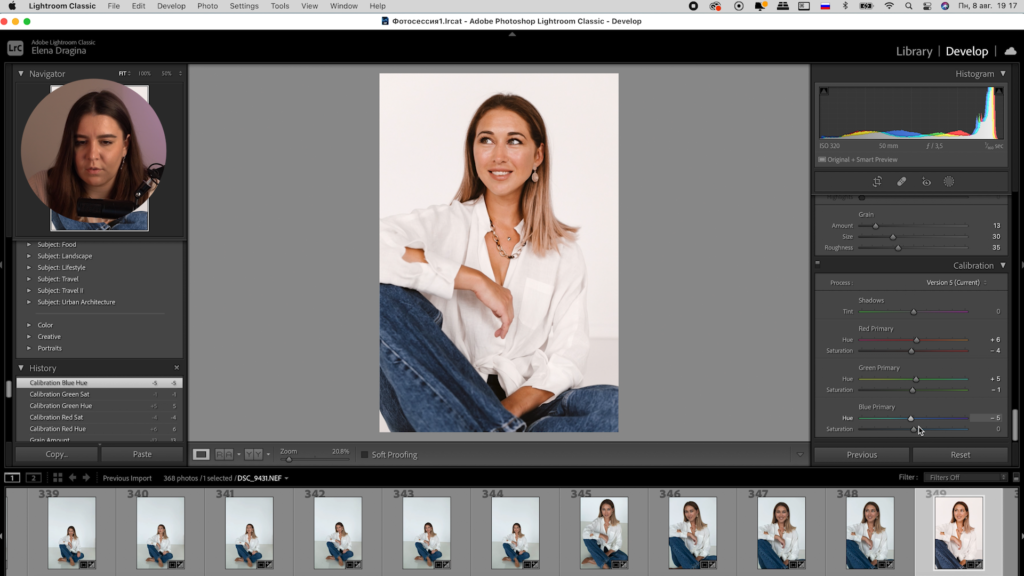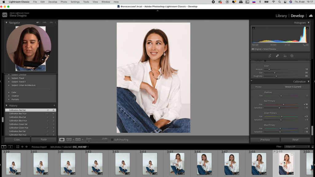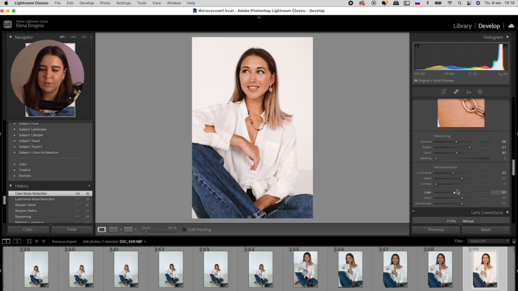 Применяем подходящий пресет и начинаем его докручивать, чтобы сделать еще более подходящим для нашей фотографии. Lightroom — продуманная программа. Блоки для обработки изображения расположены поэтапно сверху вниз в правой части экрана. Проводите коррекцию последовательно, не перепрыгивая между пунктами.