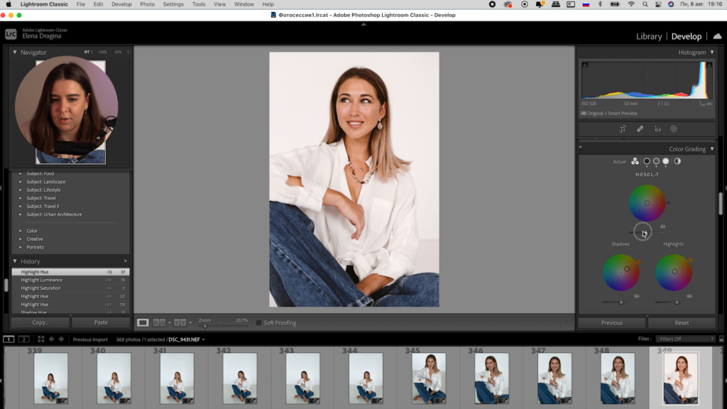 Нажмите на Presets, если этот раздел скрыт. Вы увидите встроенные пресеты Лайтрум. Можете потестировать их — при наведении на каждый вы уже видите в режиме реального времени как меняется фотография. Отменить любое действие можно на вкладке «История».