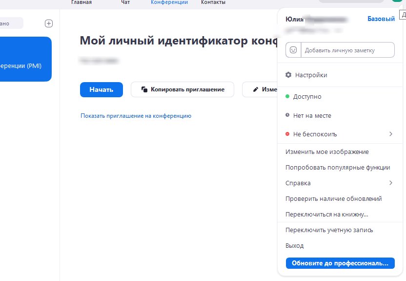 Перед созданием конференции в Zoom, войдите в раздел Настройки справа, а после перейдите в пункт Конференции .