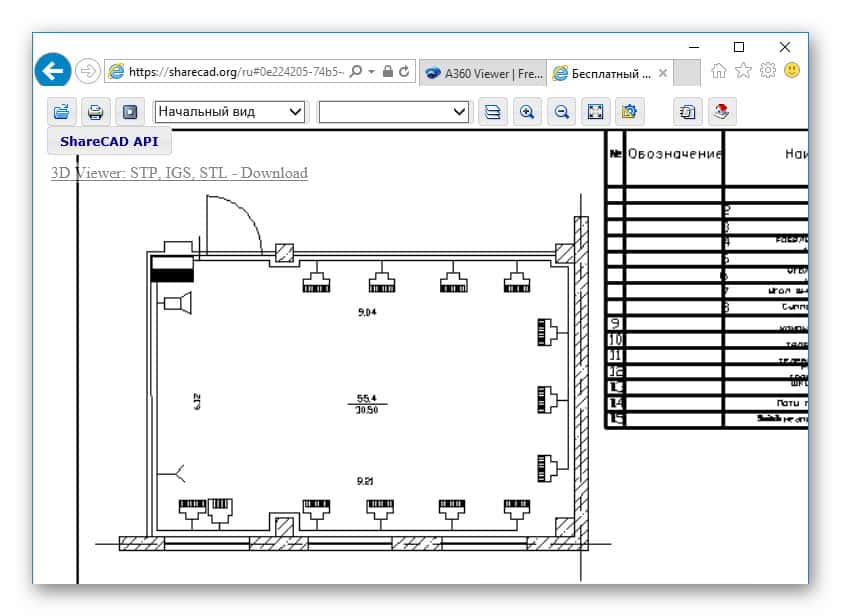 - ShareCAD.org, есть версия на русском языке. Позволяет в браузере просматривать и сохранять все популярные векторные, растровые и 3D-форматы графики. Работает в браузере всех платформах: Windows, OS X, Linux, Android, iOS, Windows Phone. Позволяет получать доступ к файлам и архивам со всех устройств после простой регистрации. Также есть версия программы для ПК — ABViewer, доступная на той же странице.