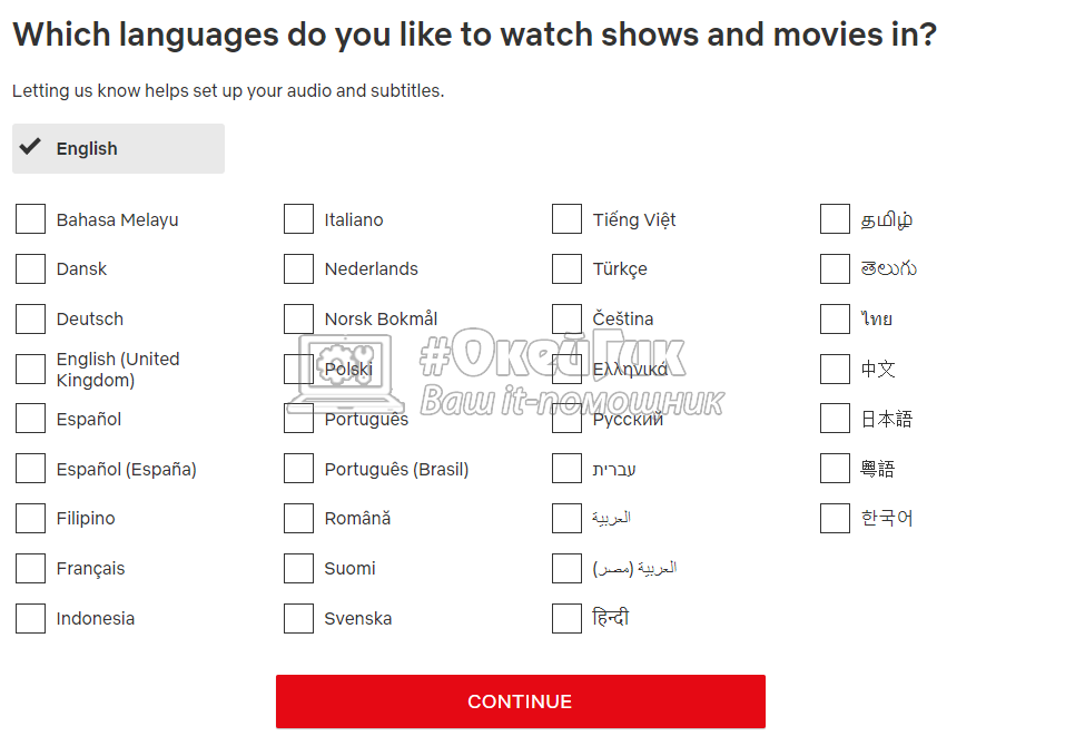 Среди доступных языков есть русский. Но поддерживается он не во всех фильмах и сериалах.. На следующем шаге нужно выбрать любимые сериалы Netflix