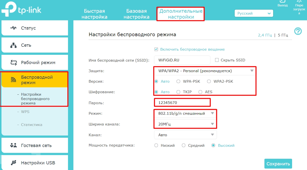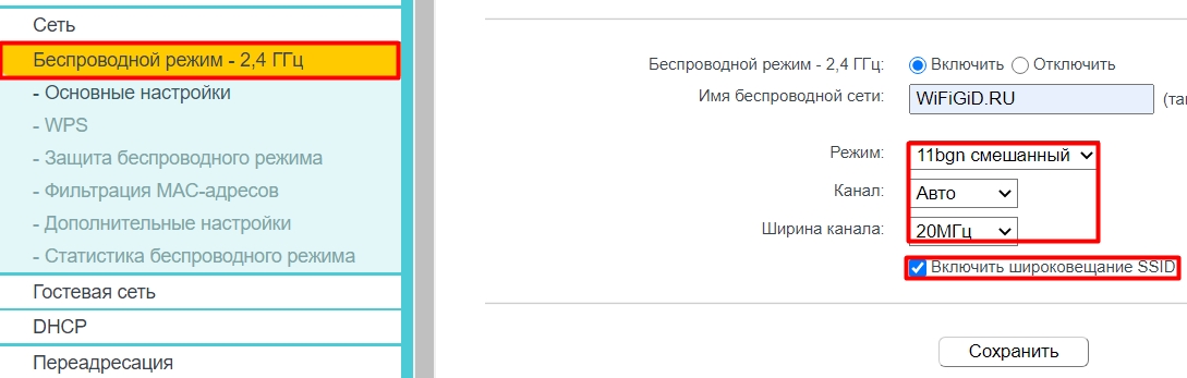 - Установим автоматический режим, который работает с тремя стандартами 802.11b/g/n.