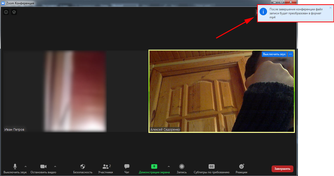3. После остановки записи конференц-клиент сохранит временный видеофайл.