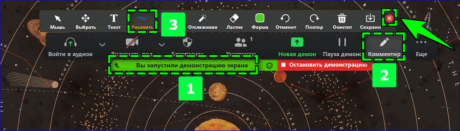 Чтобы рисовать на транслируемом экране компьютера в Zoom: