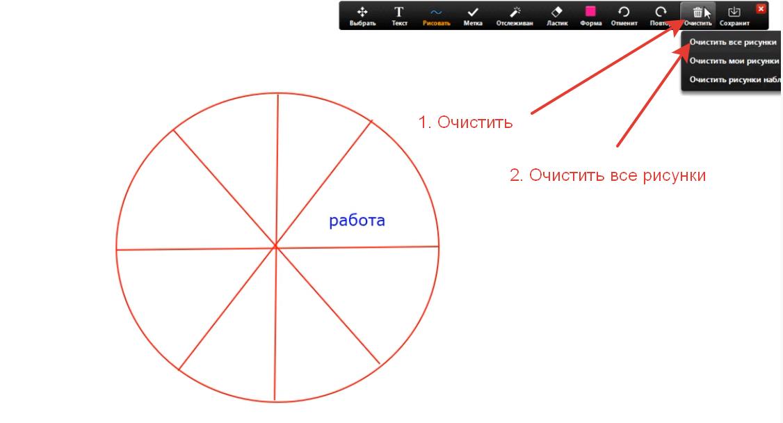 - Очистить. Очистка доски от того, что на ней писали или рисовали;