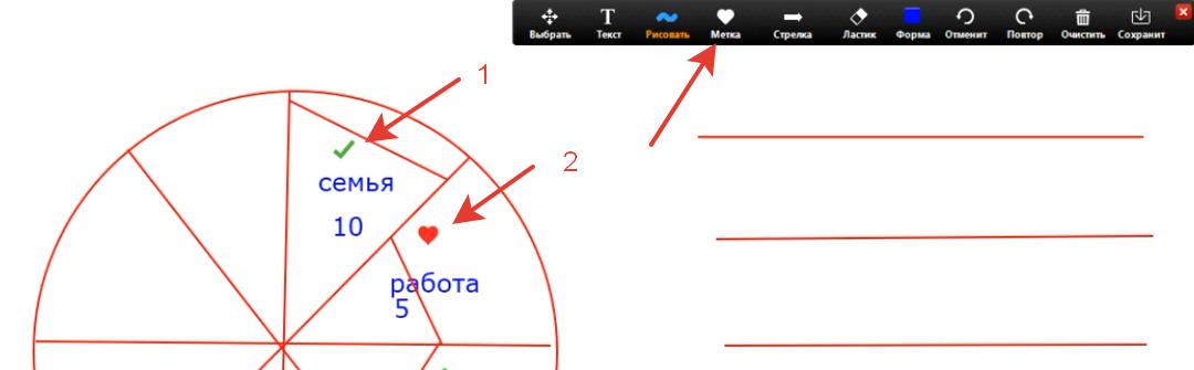 - Инструмент «Метка» позволяет добавлять отметки или картинки к деталям ваших презентаций. Есть метки в форме галочки, сердца, звездочки, стрелок, символа вопроса и крестики.