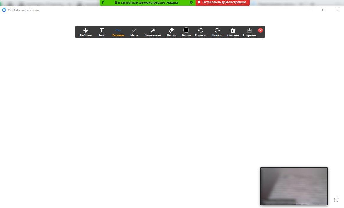 - Закрыть (⛒). Закрытие Whiteboard и возврат к экрану конференции Zoom;