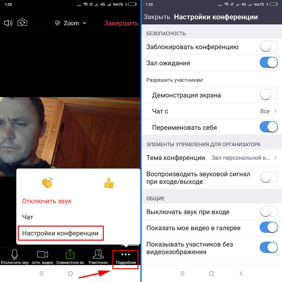 5. Кликните по пиктограмме «Подробнее» с тремя точками, чтобы поаплодировать, отключить звук, начать переписку в чате или перейти к настройкам конференции.