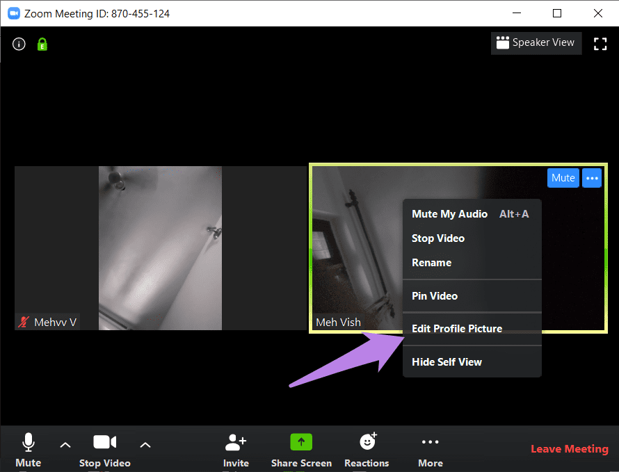 Если вы уже участвуете в собрании Zoom, щелкните правой кнопкой мыши экран предварительного просмотра видео. Выберите «Добавить или изменить изображение профиля» в меню. Остановите видео, и вы увидите свою фотографию.