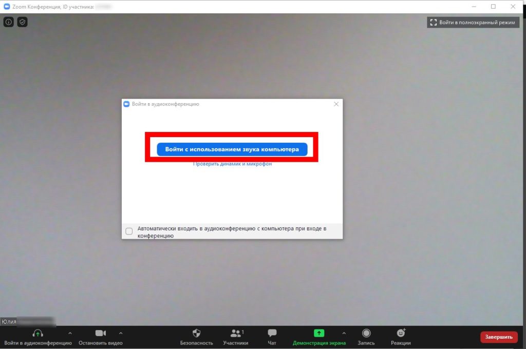 Теперь жмите на ссылку Войти с использованием звука компьютера.