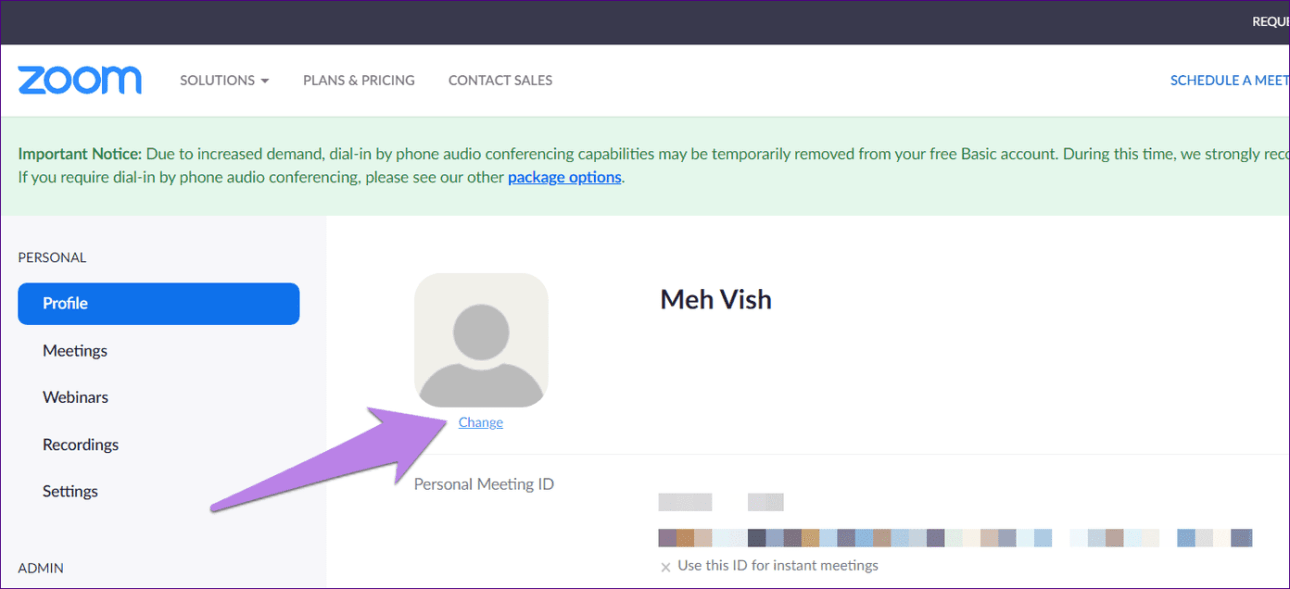 Существуют также варианты для изменения персонального идентификатора собрания и персональной ссылки. Чтобы изменить первый, выберите «Изменить» и введите идентификатор, который вы хотите использовать. Для Персональной ссылки вы нажимаете «Настроить», чтобы внести изменения, и эта опция доступна в образовательных и бизнес-аккаунтах.