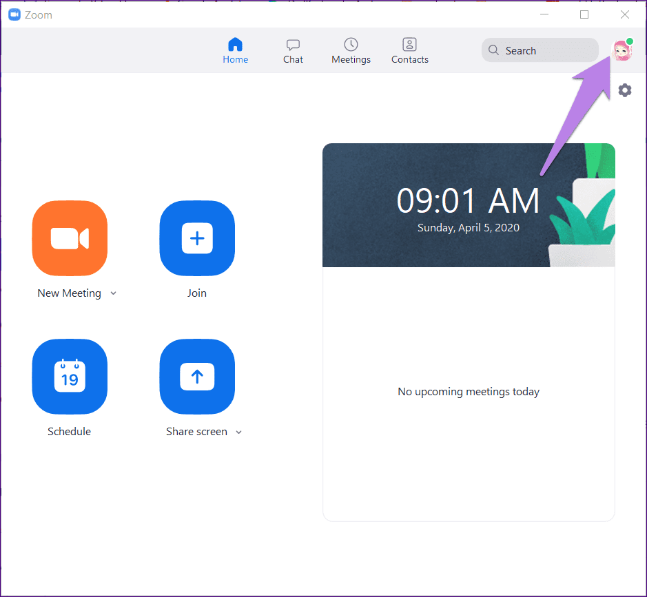 После сохранения откройте настольное приложение Zoom. Вы увидите свое изображение в правом верхнем углу.