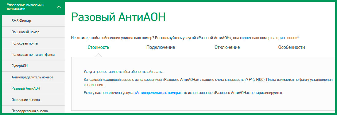 Так, например, в «МТС» эта опция называется «АнтиАОН» и доступна во всех тарифных планах, но ее стоимость будет отличаться для каждого конкретного тарифа. Узнать точную сумму можно на сайте оператора или в личном кабинете соответствующего приложения.