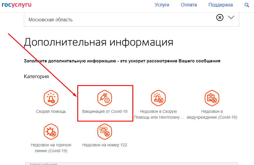 Попадаем на страницу «Подкатегории», выбираем значок «Я вакцинировался, но не получил сертификат на ЕГПУ».
