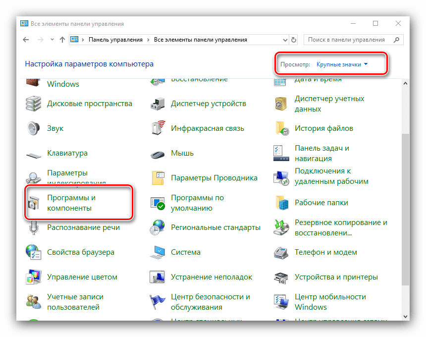 Переходим в «Панель управления» Нажимаем на «Программы и компоненты».