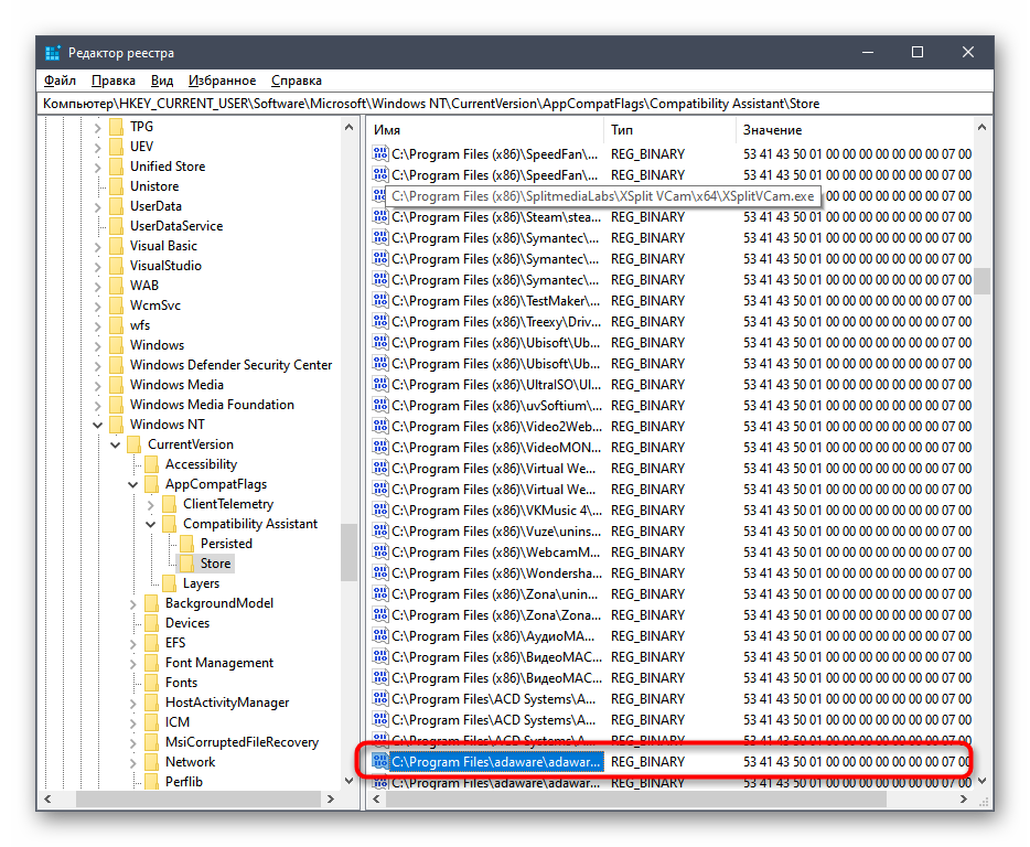 Найдите строку «Adaware Antivirus» и кликните по ней для выделения.