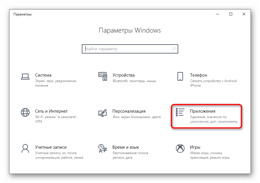 - Откройте «Параметры» сочетанием Win+I и выберите пункт «Приложения».