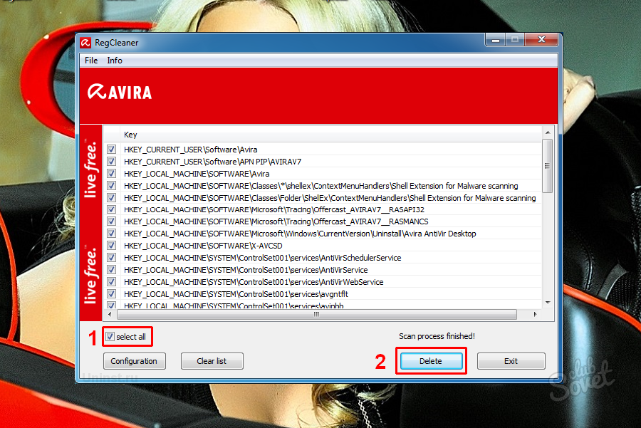 У некоторых из вас может возникнуть вопрос: «Что это за ключи?». Объясняю. Данная программа сканирует ваш реестр, на наличие файлов, содержащих надстройки, которыми пользуется антивирус Авира. Теперь они не нужны, но они остались в системе после удаления этого антивируса. Чтобы удалить эти файлы, утилита найдет их, после чего мы произведем удаление.