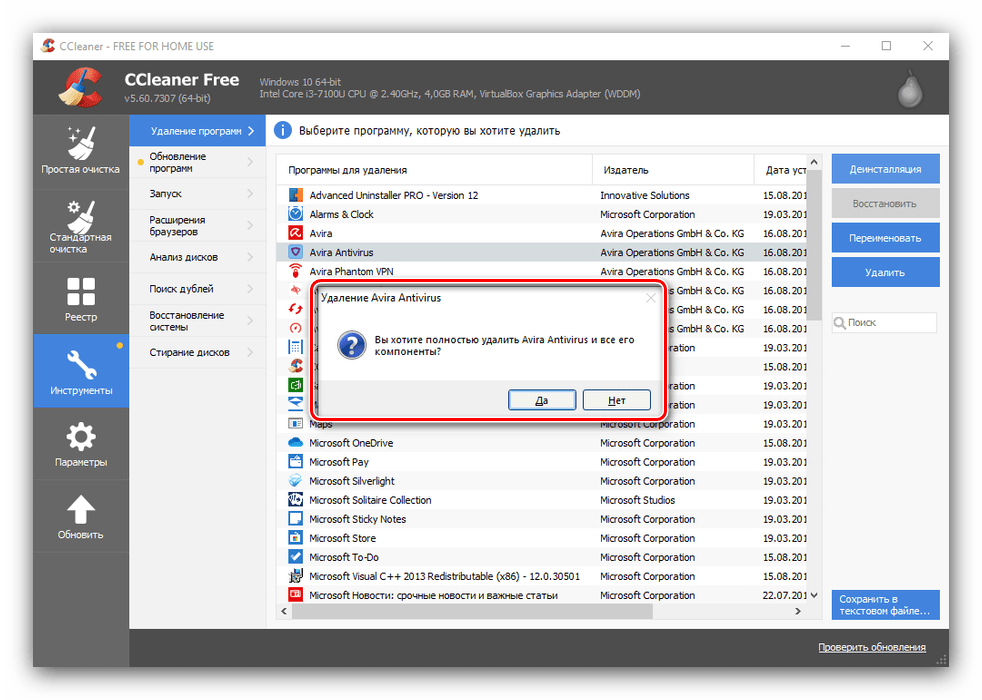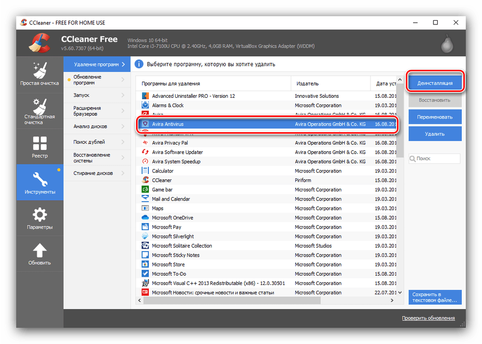 Чтобы полностью удалить антивирус Avira и записи в системном реестре, воспользуйтесь следующими способами: