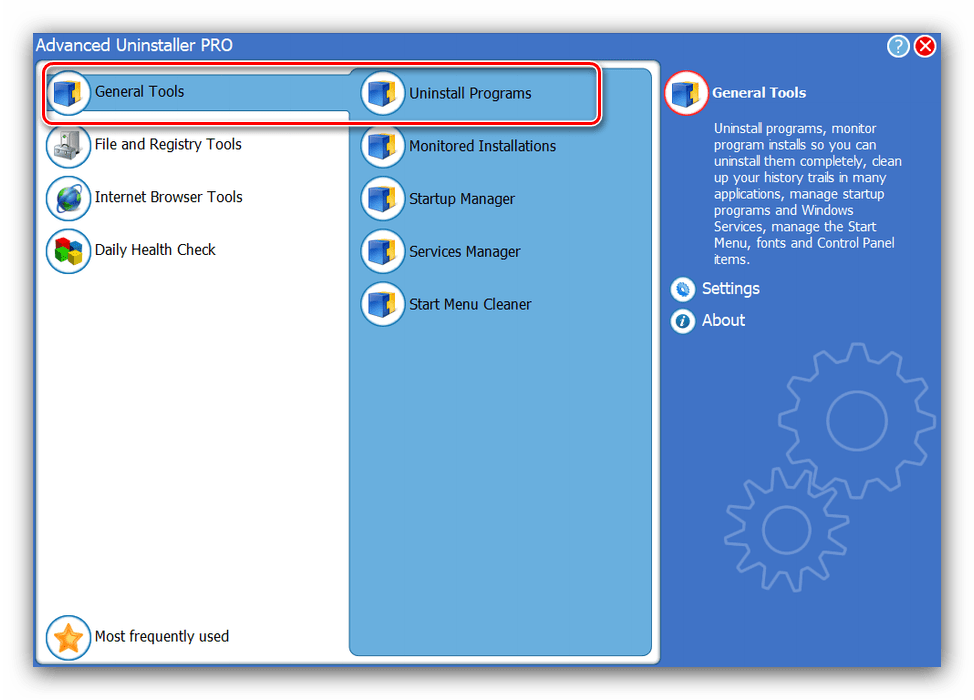 - Средство для удаления программ находится по пути «General Tools» – «Uninstall Programs».