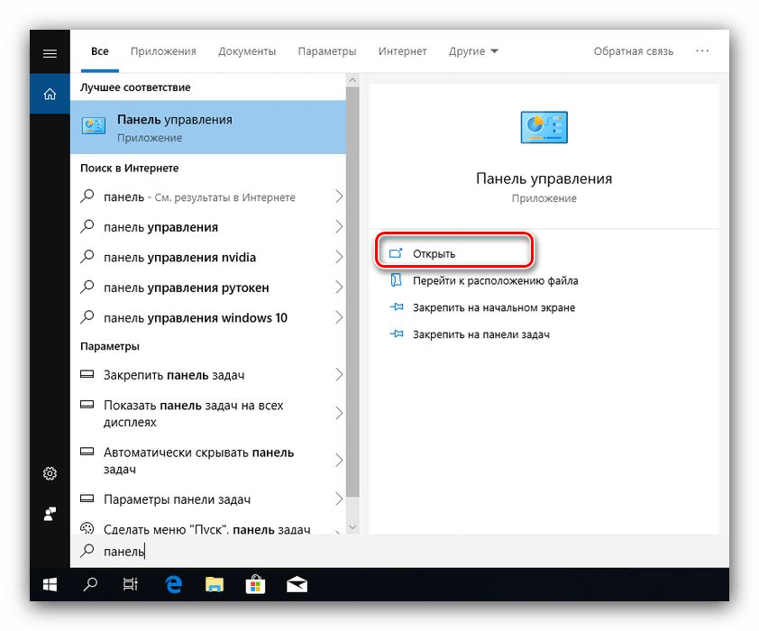 - Для начала потребуется вызвать «Панель управления» – на Виндовс 7 это можно сделать прямо из «Пуска», тогда как на Виндовс 10 нужно использовать «Поиск».