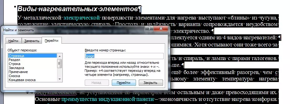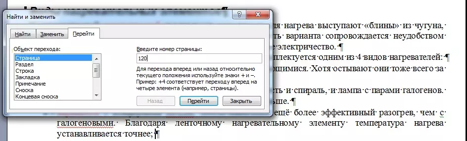 Далее выбирается вкладка «Перейти», и в неё вводится номер страницы.