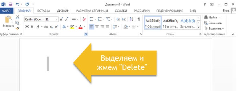 Пустой, ненужный вам абзац будет подсвечен соответствующим значком: «¶», который, к сожалению, нельзя удалить, по крайней мере, простым нажатием кнопки «DELETE» на клавиатуре.