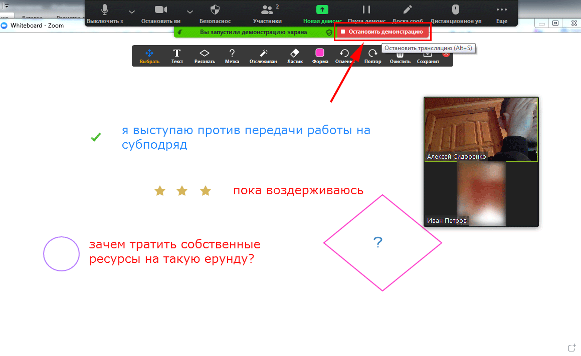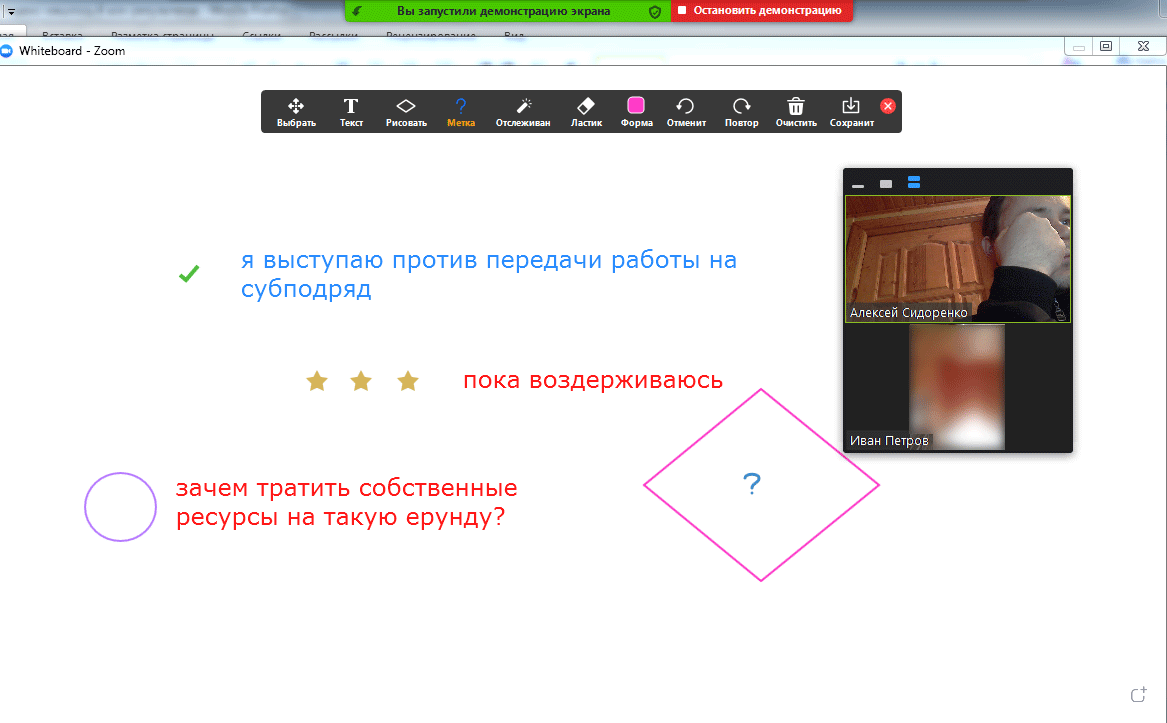 - Примите условия совместного использования экрана и покажите, что вы считаете нужным, попутно оставляя отзыв.