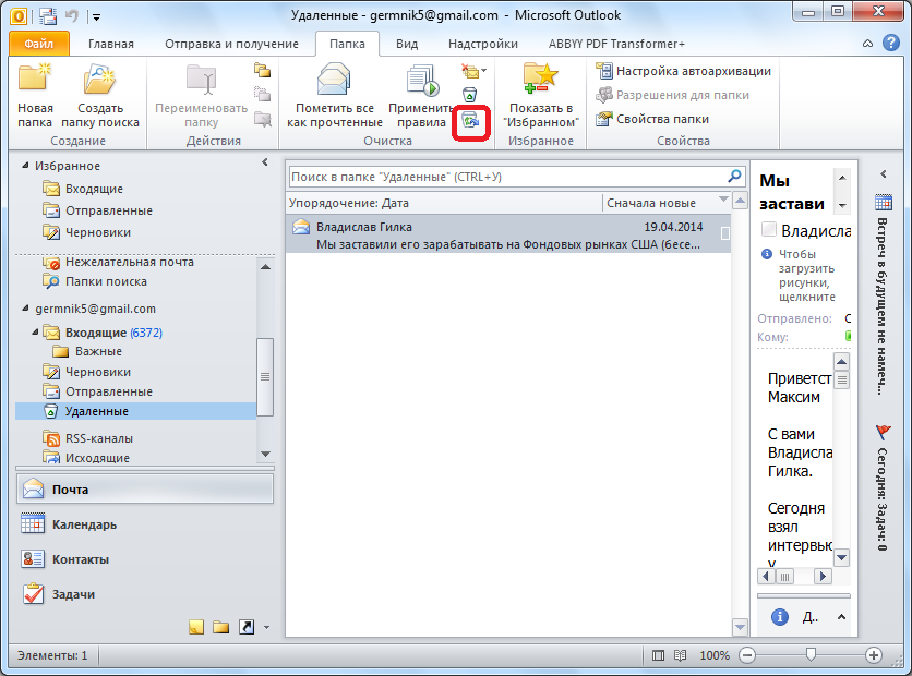 Удаление элемента из папки ” Удаленные “.