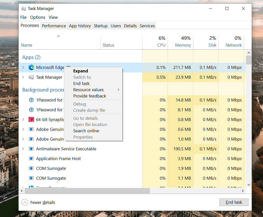 Это закроет все запущенные процессы Edge, освободит место в оперативной памяти и позволит перезапустить Edge. Вы также должны взглянуть на другие процессы, работающие в фоновом режиме. Закройте ненужные, и это должно освободить больше места в оперативной памяти на вашем устройстве с Windows 10.