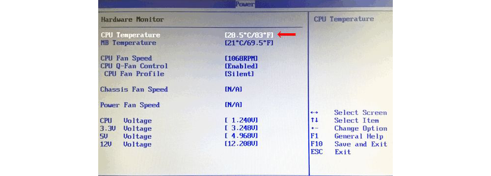 Для поверки температуры CPU в меню BIOS (UEFI) необходимо следовать инструкции: