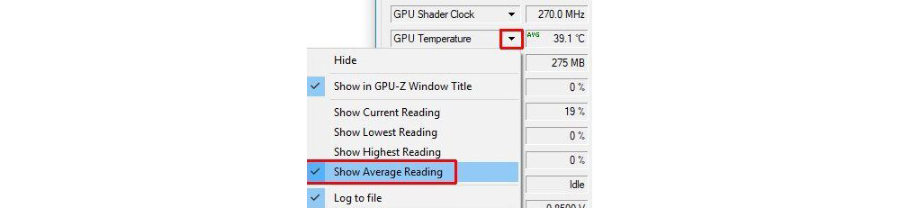 Бесплатное и максимально простое приложение, которое отображает сведения о видеокарте. Плюсом является отсутствие необходимости установки на ПК: на официальном сайте доступна портативная версия CPU-Z. После загрузки и запуска приложения нужно перейти во вкладку «Sensors», где указано значение параметра «GPU Temperature». Если кликнуть по стрелочке, расположенной справа от указанного параметра, то отобразится ниспадающее меню. В нем можно выбрать тип отображения данных. Например, опция «Show Average Reading» позволяет отследить средние температурные сведения за весь период эксплуатации устройства.