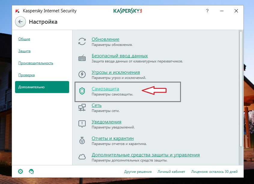 Как отключить самозащиту касперского