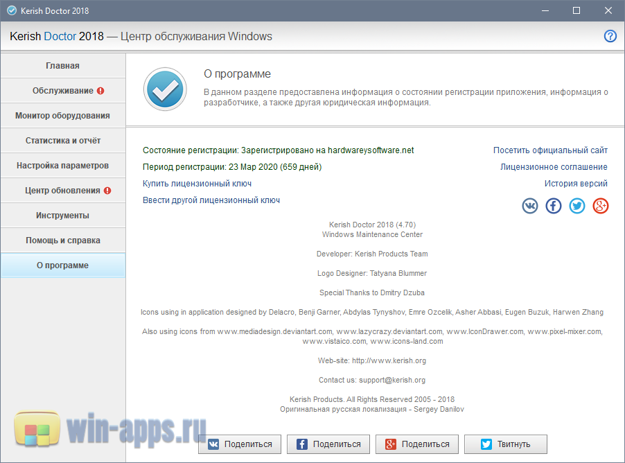 3) Скачайте последнюю версию Kerish Doctor 2019 с официального сайта (https://www.kerish.org/ru/download.php) и переустановите приложение.