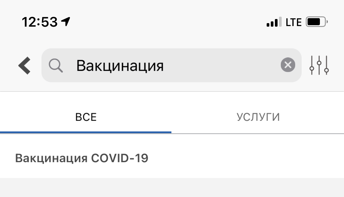 Найти QR-код можно, например, на сайте «Госуслуг». Если же вы хотите открыть QR-код в приложении «Госуслуг», то просто наберите в поиске слово «Вакцинация». После этого нажмите на «Поиск». Появится пункт «Вакцинация COVID-19»: