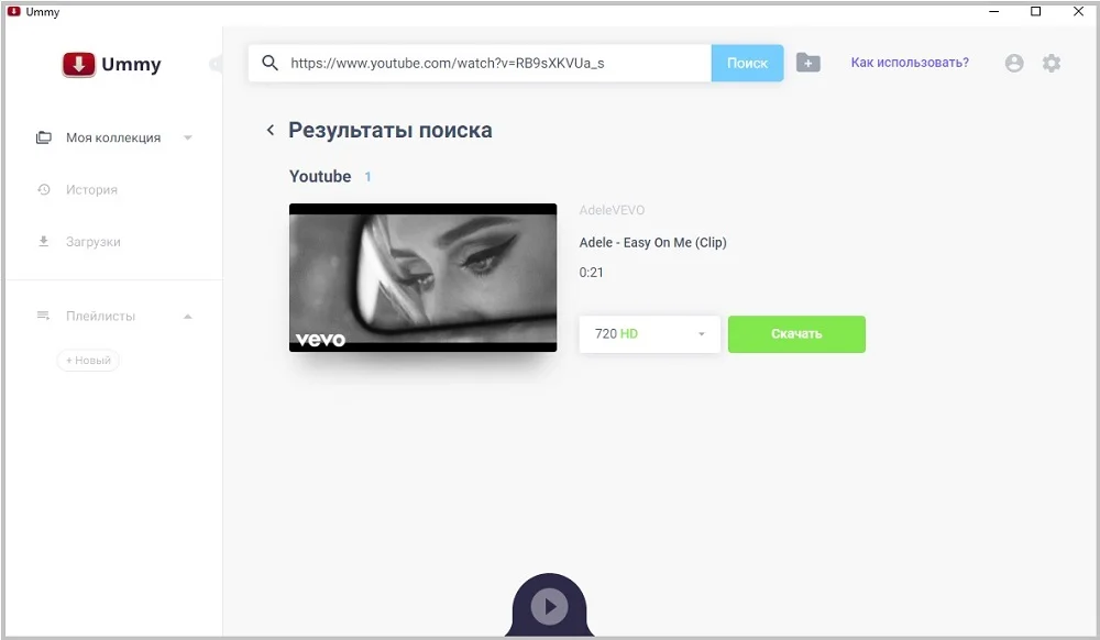 - Запустите Ummy и в строке поиска вставьте скопированную ссылку.