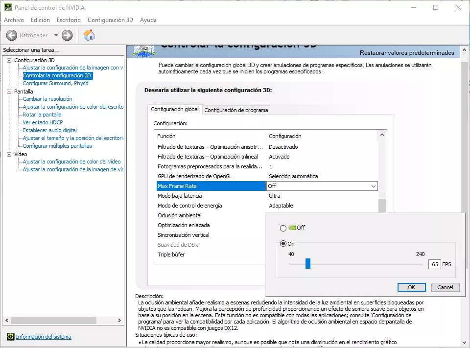 Одним из способов ограничения максимального FPS нашей видеокарты является использование панели управления собственными драйверами. Недавно, NVIDIA включил опцию в своей панели управления, которая позволяет нам ограничивать максимальный FPS, который мы хотим, чтобы наша видеокарта обрабатывала.