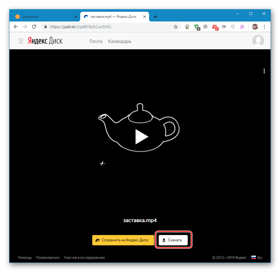 Если ваш друг отправил вам ссылку на интересный видеоролик, то при клике на нее видео откроется в новом окне. И в этом случае, как и в предыдущих, вы можете либо просмотреть его, либо скачать в облачное хранилище или на ПК. Для выбора третьего варианта достаточно лишь нажать на кнопку «Скачать». Продолжительность скачивания зависит от объема файла.