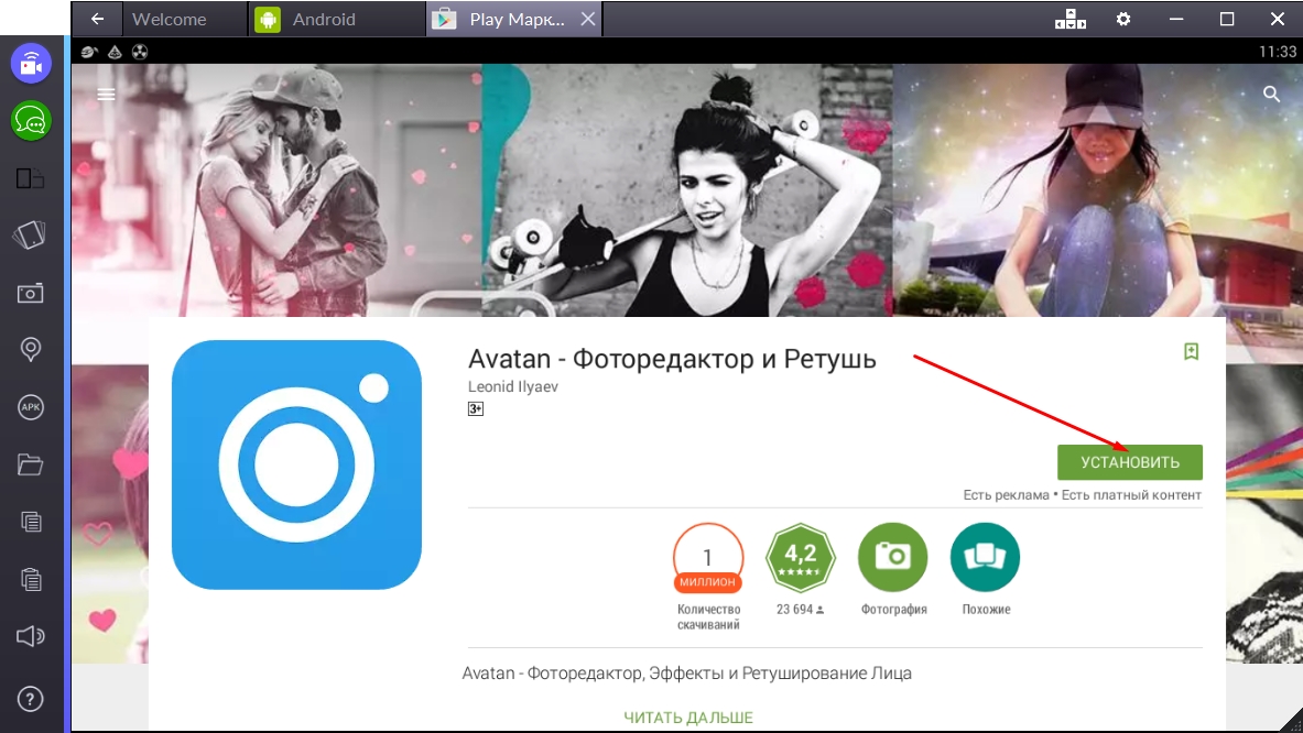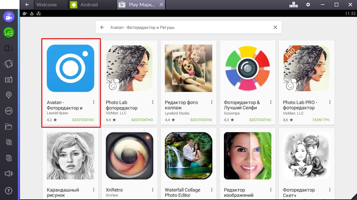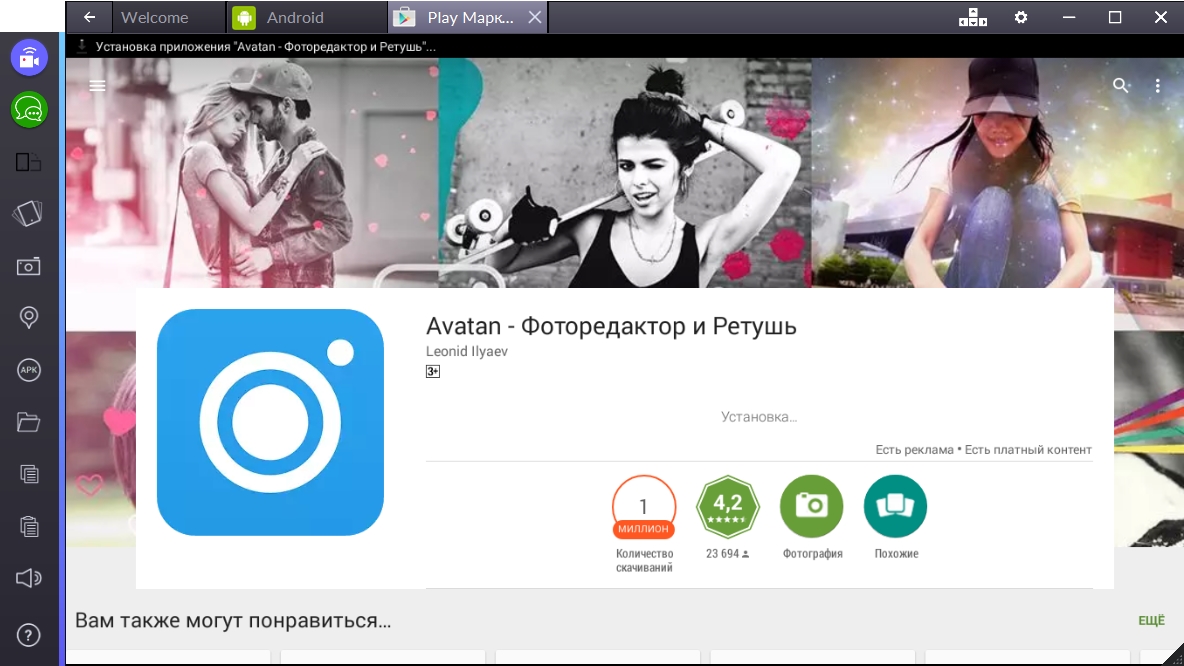 Устанавливаем Avatan с помощью эмулятора BlueStacks.