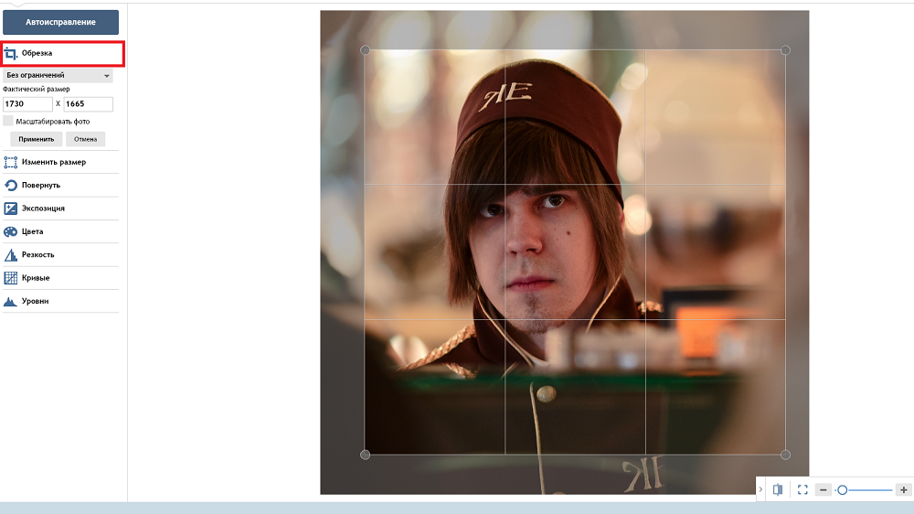 » вы сможете обрезать фото, повернуть его, изменить размер и экспозицию, сменить цвета, уровни, резкость и так далее. Специальным бонусом выглядит самая верхняя кнопка «Автоисправление