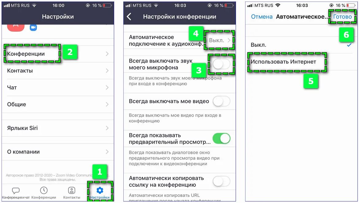 Перечисленные опции можно делать на смартфоне или ПК. Тогда звук будет включаться в стандартном режиме при запуске приложения и подключении к конференции.