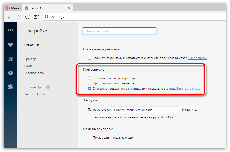 В верхней области отобразившегося окна вы найдете блок «При запуске открывать», в котором необходимо убедиться, что отметка поставлена не на пункте «Заданные страницы». Если отмечен именно этот пункт, вам необходимо щелкнуть около него по кнопке «Добавить», а затем удалить из списка ссылки на рекламные сайты.