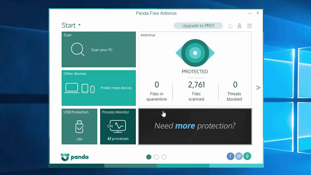 - Panda Antivirus PRO. Если хочется продвинутой защиты, и бюджет позволяет приобрести недорогую программу, то лучшим решением будет Panda. Программа отличается высоким уровнем автоматизации – после завершения установки антивируса будут подобраны оптимальные параметры защиты. Бесплатная версия тоже есть, но она уступает Avast и AVG.