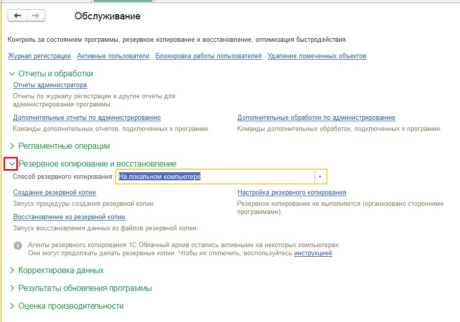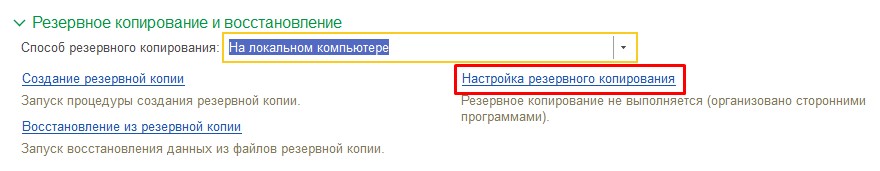 Есть 2 варианта: «На локальном компьютере» и «1С:Облачный архив».