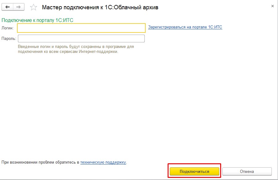 Мастер подключения 1С облачный архив