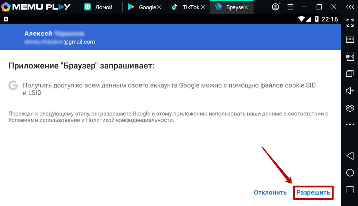6. Разрешите браузеру доступы.