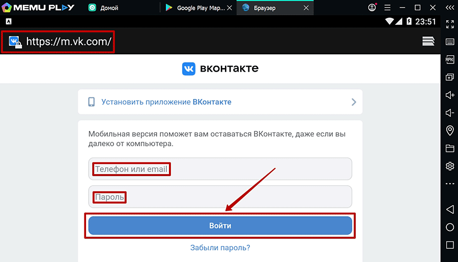 Войти через компьютер с помощью эмулятора