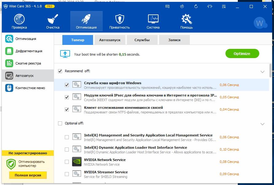 Вторая по счету группа утилит Wise Care 365 – это оптимизация системы. Здесь собраны все инструменты, которые помогут оптимизировать работу.